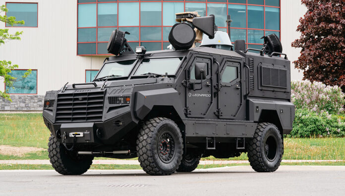 The Senator family has seen extensive operational use in Ukraine, where more than 1,800 vehicles have been supplied to Ukrainian forces since 2022. Roshel’s Ontario facility, which conducts design, engineering, and final assembly, adapted the Senator MRAP to host Leonardo’s Falcon Shield Mobile configuration, enabling on-the-move protection against reconnaissance drones, swarming threats, and weaponized UAS. The platform retains its baseline protection levels—STANAG 4569 Level 2 against ballistic threats and Level 3 blast resistance—while adding a bolted, maintainable armor capsule and mine-protected seating.