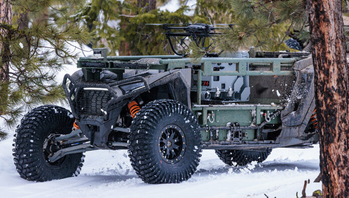 NCSIST electric-powered autonomous recconaissance-strike tactical wheeled vehicleThe NCSIST electric-powered autonomous reconnaissance-strike tactical wheeled vehicle on display at TADTE 2025 was equipped with a remotely controlled weapon station mounting a 12.7mm machine gun and a drone launcher capable of launching six Iron Horse drones.