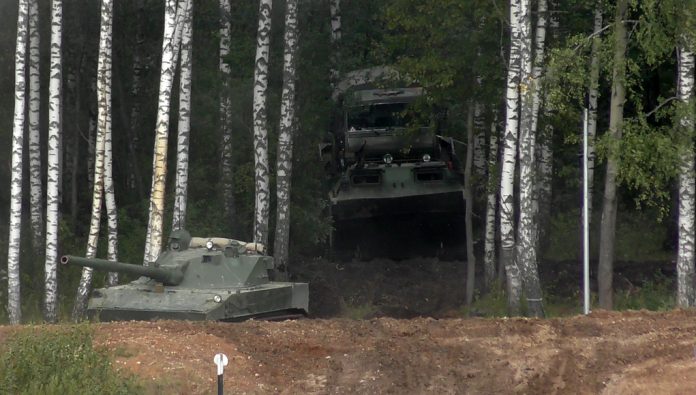 Russian amphibious unit approaches a crossing point through dense forest during Army 2016 military demonstrations at Alabino. Photo: Tamir Eshel, Defense-Update